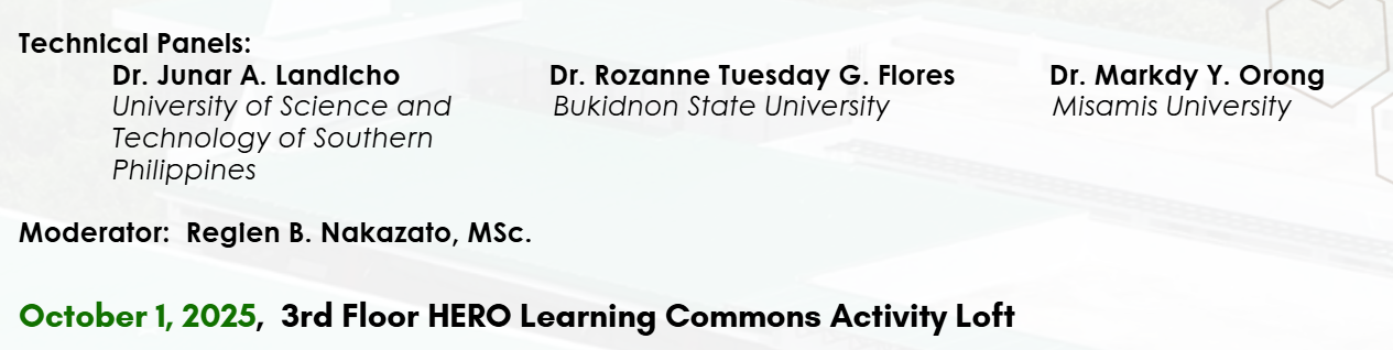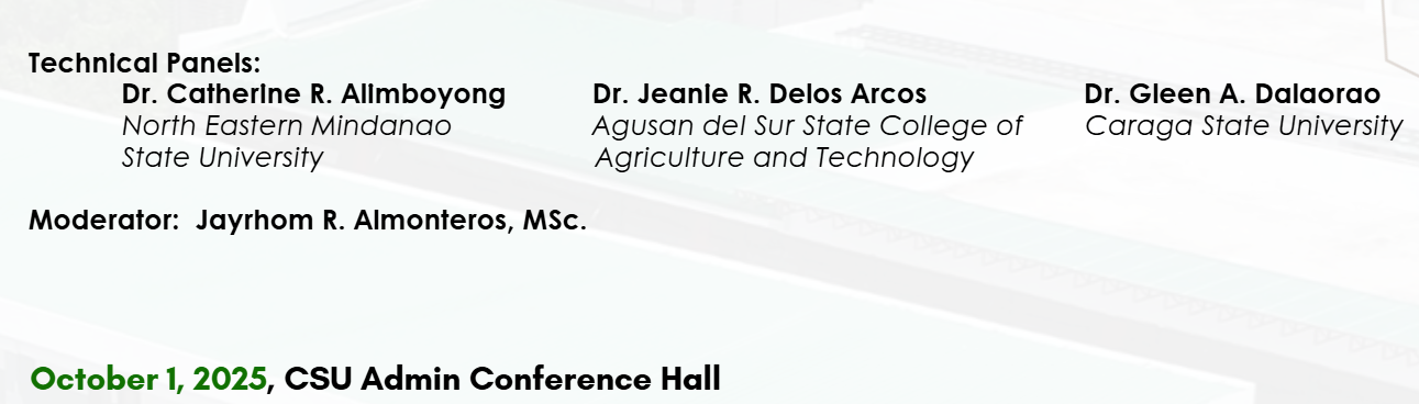 3:20 – 3:40 PM | Carbon Sequestration Potential and Stability of Biochar from Agricultural Residues: A Comparative Elemental Analysis via EDX | Michael M. Sabugaa Agusan del Sur State College of Agriculture and Technology |